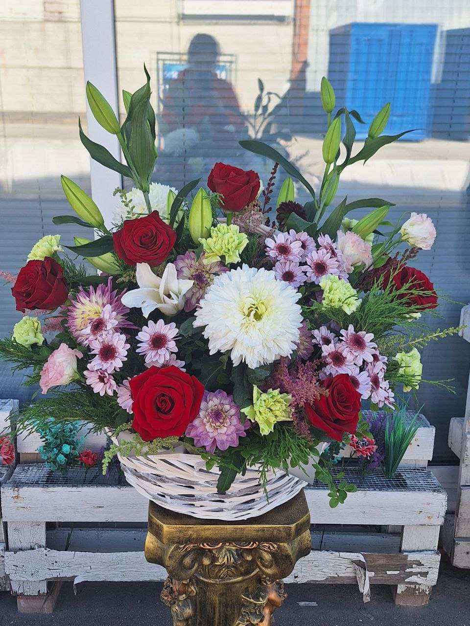 Букет в корзине «Картина маслом» 11 000 руб. за букет с доставкой из нашего магазина. Осуществляем срочную доставку цветов и букетов.